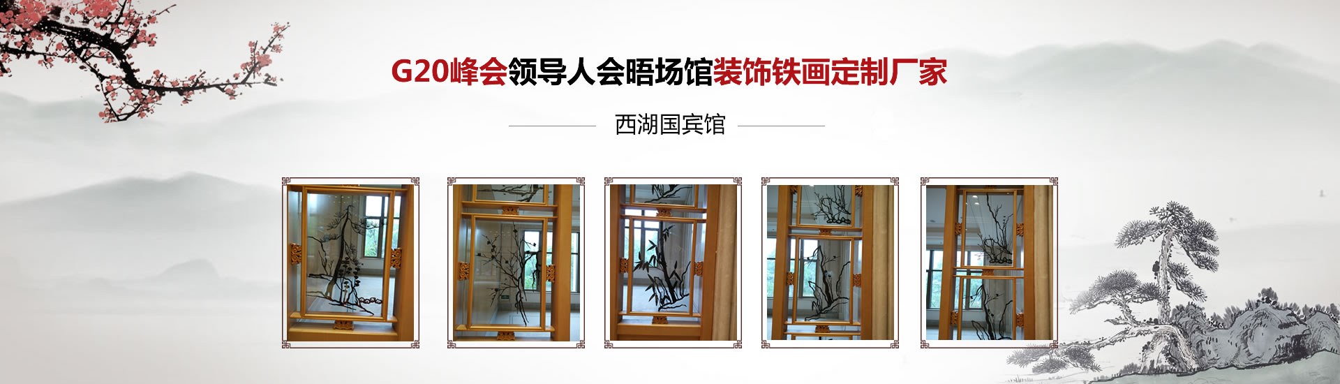 2016年6月,徽藝坊鐵畫為G20峰會習(xí)主席與奧巴馬會晤的西湖國賓館5號館設(shè)計、定制裝飾鐵畫,以中國傳統(tǒng)仿古山水為題材設(shè)計,采用國家級非遺技藝的鍛制技藝,純正手工制作,極具中國文化特色,徽藝坊讓鐵畫見證偉大時刻,再次成為世人矚目的焦點。撥打熱線:400-660-8834獲取《酒店鐵畫設(shè)計方案》 點擊